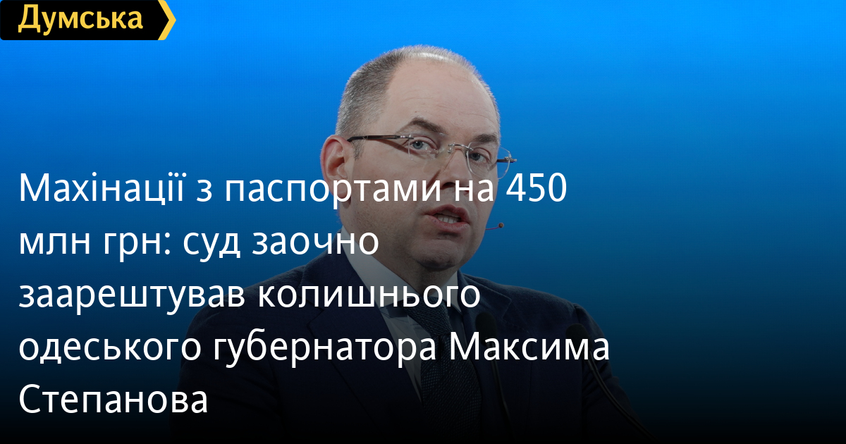 Махінації з паспортами на 450 млн грн: суд заочно заарештував колишнього одеського губернатора Максима СтепановаКолишнього міністра охорони здоров'я і губернатора Одеської області Максима Степанова, якого підозрюють у привласненні понад 450 млн грн, коли він очолював державне підприємство «Поліграфічний комбінат «Україна», заочно заарештував Вищий антикорупційний суд. Про це повідомляє пресслужба Спеціалізованої антикорупційної прокуратури. «13 вересня 2023 року за клопотанням детективів НАБУ, погодженим прокурором САП, слідчий суддя ВАКС обрав запобіжний захід ексдиректору ДП «Поліграфкомбінат», підозрюваному у привласненні та легалізації півмільярда гривень. Суд погодився з доводами прокурора і обрав підозрюваному запобіжний захід у вигляді тримання під вартою», — сказано в заяві САП. Там додали, що після затримання Степанова суддя вирішить питання про застосування цього запобіжного заходу. Наразі ексміністр перебуває за межами України. Нагадаємо, окрім колишнього міністра, про підозру також повідомили ексначальнику відділу ДП «Поліграфкомбінат» і фізичній особі-пособнику злочину, а також скерували до Естонії документи для повідомлення про підозру двом громадянам цієї країни (директору та менеджеру підконтрольної компанії). Компанія-прокладка закуповувала матеріали для виготовлення бланків документів безпосередньо у виробників, після чого перепродавала їх держпідприємству за завищеною в 4-6 разів вартістю. Протягом 2013-2016 років через цю схему група зловмисників заволоділа коштами на суму близько півмільярда гривень. Зазначимо, що Степанов 2020 року йшов під першим номером на вибори до Одеської облради від президентської партії «Слуга народу». Нинішній голова регіональних зборів Григорій Діденко був на третьому місці в президентській політсилі, після Сергія Колебошина. Помітили помилку? Виділяйте слова з помилкою та натискайте control-enter