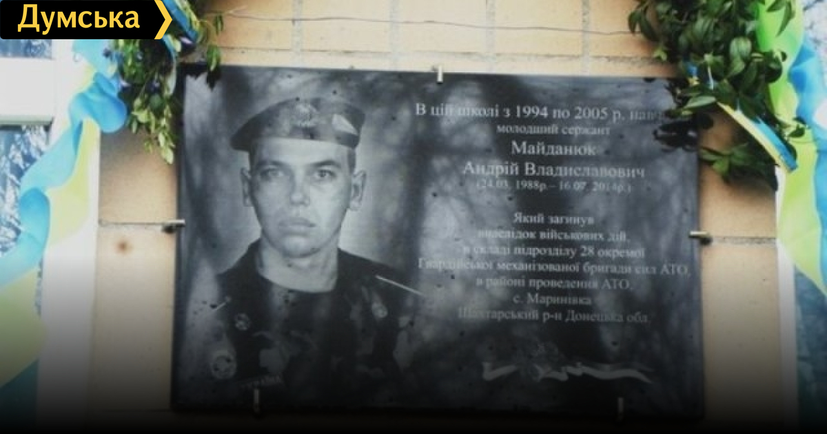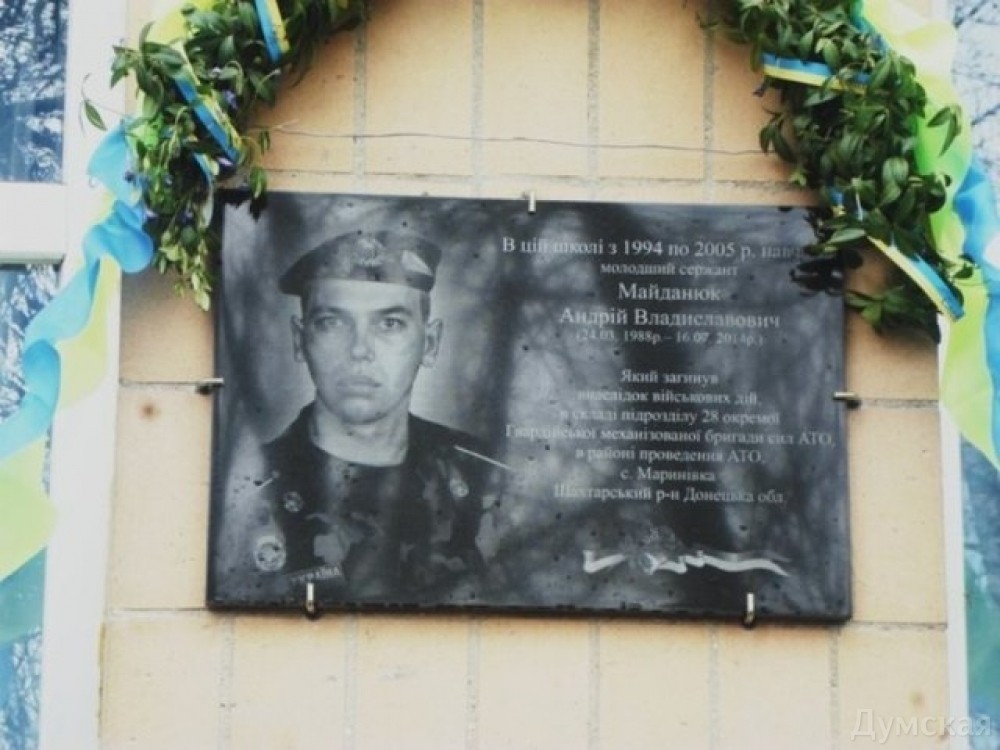 В Одесской области установили мемориальную доску в память о погибшем бойце АТОПамять о военнослужащем 28-й отдельной механизированной бригады Андрее Владиславовиче Майданюке, который погиб в АТО, увековечили мемориальной доской. Как сообщили в областной администрации, ее открыли 21 апреля на фасаде Осичковской средней школы Савранского района, которую окончил Андрей. 16 июля 2014 года младший сержант Майданюк погиб при выполнении воинского долга в селе Мариновка Донецкой области. В церемонии торжественного открытия мемориальной доски приняли участие родные героя, его друзья и знакомые, учащиеся и педагогический коллектив школы, участники АТО, представители власти, военкомата и общественности. Право открыть доску предоставили брату героя Ивану и сестре Елене. Вечная память погибшим за свободу и независимость Отечества! СМЕРТЬ РОСІЙСЬКИМ ОКУПАНТАМ! Помітили помилку? Виділяйте слова з помилкою та натискайте control-enter |