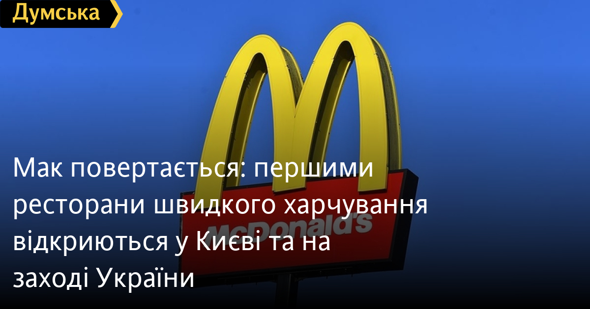 Ресторани мережі швидкого харчування McDonald's відкриватимуться в Україні поетапно. Першими свої двері відчинять заклади у Києві та на Заході країни.