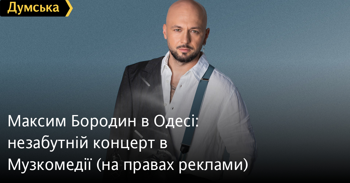 Максим Бородин в Одесі: незабутній концерт в Музкомедії (на правах реклами)Сольний концерт талановитого та харизматичного Максима Бородіна відбудеться в Музкомедії сьогодні, 22 жовтня о 18:30. На вас чекає красива романтична програма — найкраща ідея для незабутнього вечора. Цього вечора Максим Бородін у супроводі музикантів виконає свої найкращі композиції «Якби не ти», «Чайка», «Скажи мені», «Моя країна», а також авторські версії популярних українських пісень. Приходьте разом з коханою половинкою та насолоджуйтеся теплою романтичною атмосферою пісень щирого та відкритого артиста. Співак пройшов шлях від вуличного артиста до популярного співака з багатотисячною аудиторією. На широкий загал Максим став відомим завдяки участі у шоу «Голосу країни-12». Серед найвідоміших пісень артиста – романтичний хіт року «Якби не ти», який розкриває всю важливість та силу справжніх почуттів. Квитки тут. СМЕРТЬ РОСІЙСЬКИМ ОКУПАНТАМ! Помітили помилку? Виділяйте слова з помилкою та натискайте control-enter |