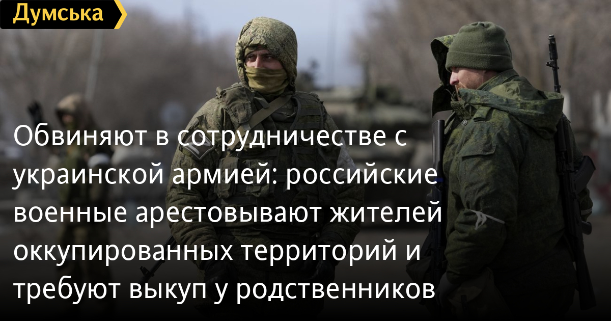 Обвиняют в сотрудничестве с украинской армией: российские военные арестовывают жителей оккупированных территорий и требуют выкуп у родственниковНезаконные задержания мирных жителей оккупированных населенных пунктов проводят российские военные. Об этом сообщила заместитель министра обороны Украины Анна Маляр. «Под предлогом якобы проведения контрразведывательных мероприятий проводятся аресты граждан, преимущественно из числа предпринимателей и других состоятельных местных жителей, формальным основанием для которых является обвинение в возможном сотрудничестве с Силами обороны Украины», — рассказала замминистра. По ее словам, за освобождение задержанных оккупанты требуют у их близких значительные суммы. «По состоянию на начало этой недели в населенном пункте Нижние Серогозы на временно оккупированной территории в Херсонской области с целью получения выкупа оккупанты поместили под стражу около сотни таких лиц», — отметила Маляр. СМЕРТЬ РОССИЙСКИМ ОККУПАНТАМ! Заметили ошибку? Выделяйте слова с ошибкой и нажимайте control-enter |