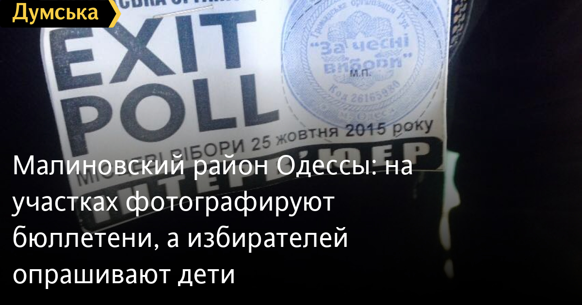 Малиновский район Одессы: на участках фотографируют бюллетени, а избирателей опрашивают дети
