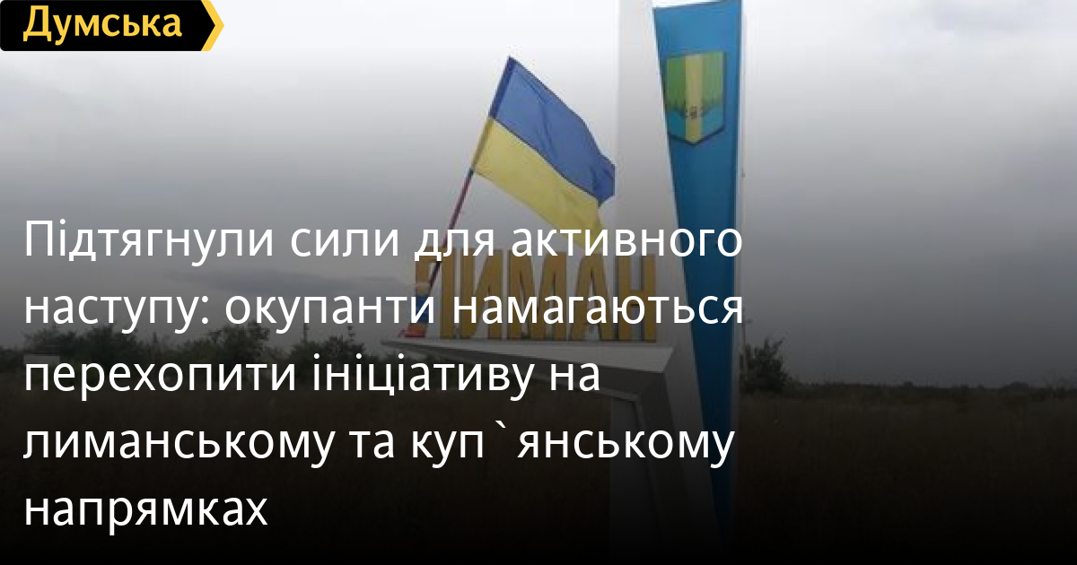 Основними цілями для наступу російських окупантів зараз є Лиман Донецької області та Куп'янськ Харківської області.