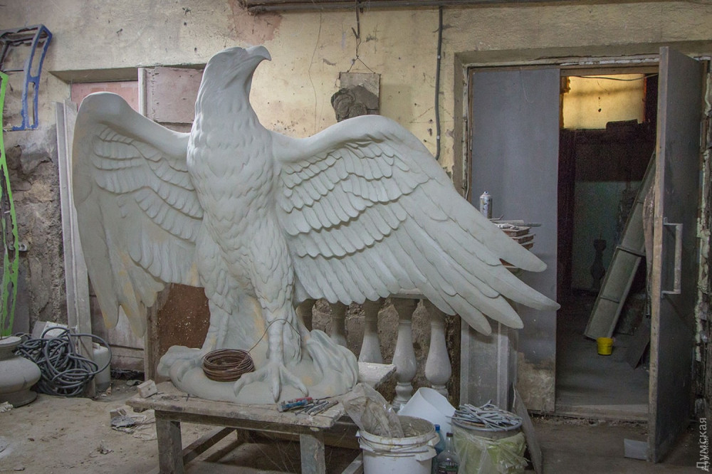 Напомним, жильцы дома много лет добиваются его реставрации. За свой счет они отремонтировали подъезд, воссоздали утраченные ажурные ворота въездной арки, резные двери квартир и подлатали крышу. Кроме того, они оплатили изготовление реплик утраченных скульптур, которые некогда украшали памятник – огромного льва и двух орлов на шарах, пригвоздивших к ним когтями фантастических пресмыкающихся. Делали их в мастерской скульптора Юрия Янакия.