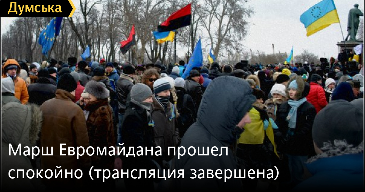 Колонна прошла по Ришельевской и Пушкинской улицам и благополучно вернулась к Дюку. «Думская» проводила прямую видеотрансляцию с места событий.