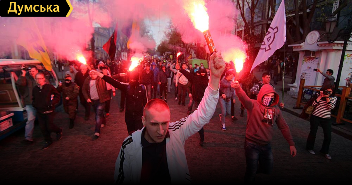 В четверг вечером молодые украинские националисты прошлись по центру города маршем в память о погибшем пять лет назад в уличной драке Максиме Чайке.