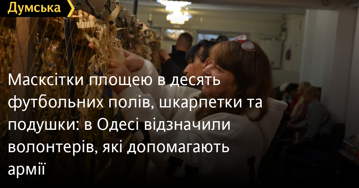 Масксітки площею в десять футбольних полів, шкарпетки та подушки: в Одесі відзначили волонтерів, які допомагають арміїПонад 70 тисяч квадратних метрів маскувальних сіток створили за час повномасштабної війни волонтери одеського Гончаренко центру. Сьогодні, 5 грудня, у центрі відбулося свято, присвячене Дню волонтера, передає наш кореспондент. За період війни волонтери одеського Гончаренко центру сплели для Сил оборони України маскувальні сітки площею понад 70 тисяч квадратних метрів. Ними можна було б встелити приблизно десять футбольних полів. «Саме українське суспільство показало всьому світу, що волонтери можуть бути потужною рушійною силою не тільки в тилу, а й на передовій, — зазначив директор одеського Гончаренко центру Костянтин Задорожний. — Тільки в листопаді ми передали Силам оборони України 177 сіток площею майже в 3 тисячі квадратних метрів. Ці сітки ми доповнюємо невеликими подарунками: це дитячі малюнки, обереги, ляльки-мотанки, смаколики, які передають нам друзі та партнери». Спочатку волонтери плели сітки з усього, що потрапляло під руку, проте з часом перейшли на спеціальну тканину. Вона легка, не вбирає вологу, не горить, на морозі не прилипає до техніки, її легко можна зняти і дуже швидко накинути на танк, БМП, гармату або, наприклад, бліндаж. Крім того, корисним бонусом до кожної сітки йдуть шкарпетки та килимки, зв'язані волонтерами, а також грілки, особливо актуальні в зимовий період. «Вперше ми зібралися 28 лютого 2022 року. Відтоді працюємо щодня, це наша боротьба, адже серце болить і душа розривається за нашу країну. Робимо все від себе залежне, щоб скоріше жити в мирі та добрі», — каже волонтерка Світлана Яношпольська. Свято пройшло в дуже дружній атмосфері, усі волонтери отримали грамоти, тематичні сумки з написом «Я волонтер» від Гончаренко центру. «Назавжди запам'ятаю березень 2022 року, коли сотні людей одночасно приходили плести сітки в Гончаренко центр, який тоді базувався у видавництві «Чорномор'я». Ви - приклад для всього світу, так об'єднати націю могли тільки волонтери», — зазначив депутат міськради від «Євросолідарності» Олег Звягін. СМЕРТЬ РОСІЙСЬКИМ ОКУПАНТАМ! Помітили помилку? Виділяйте слова з помилкою та натискайте control-enter |