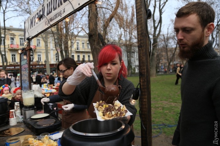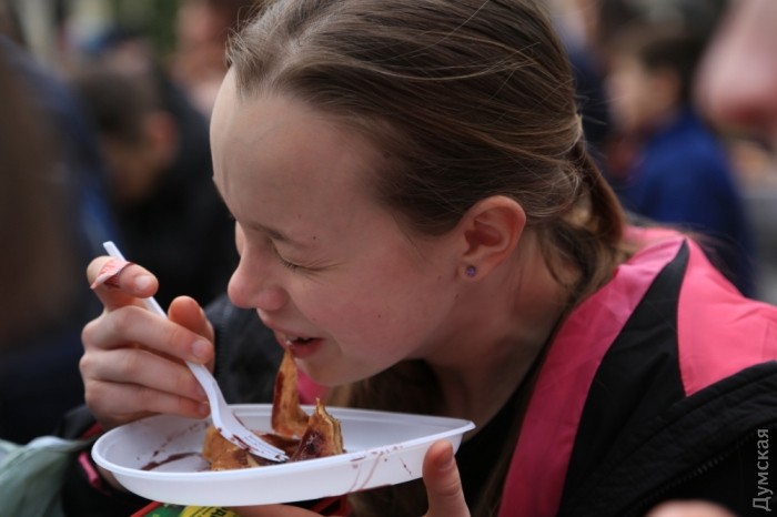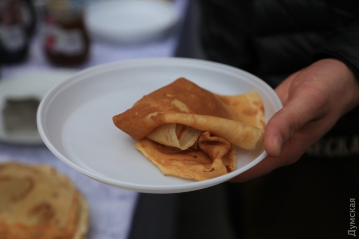 За бесплатными блинами выстроилась большая очередь. Их мазали вареньем и джемом и поглощали с большим аппетитом. Спиртных напитков не наблюдалось, но было очень весело.