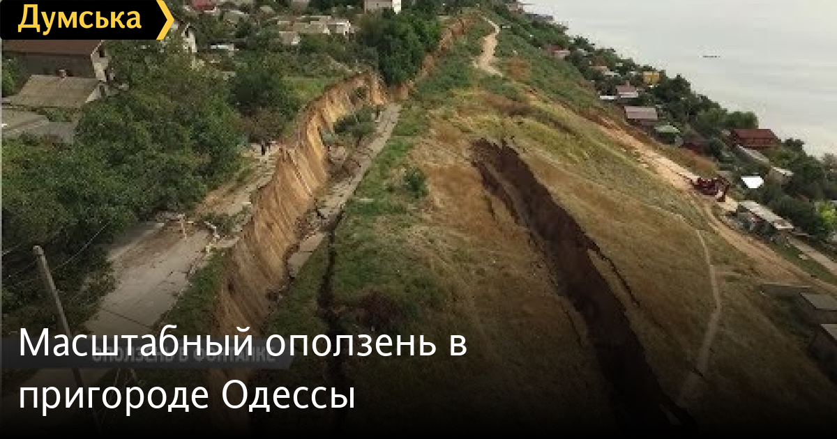 Масштабный оползень в пригороде Одессы. В селе Фонтанка обвал добрался прямо до калиток, в пропасть рухнули электрические столбы и дорога.