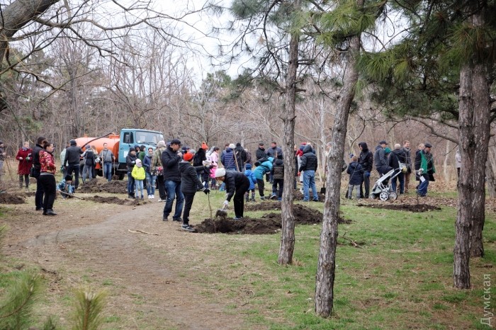 Как передает корреспондент «Думской», кроме сотрудников «Горзелентреста» в субботнике приняли участие более 50 одесситов, в основном молодых семей с детьми. Горожане высаживают сотни дубов, ясеней, слив, яблоней и берез.