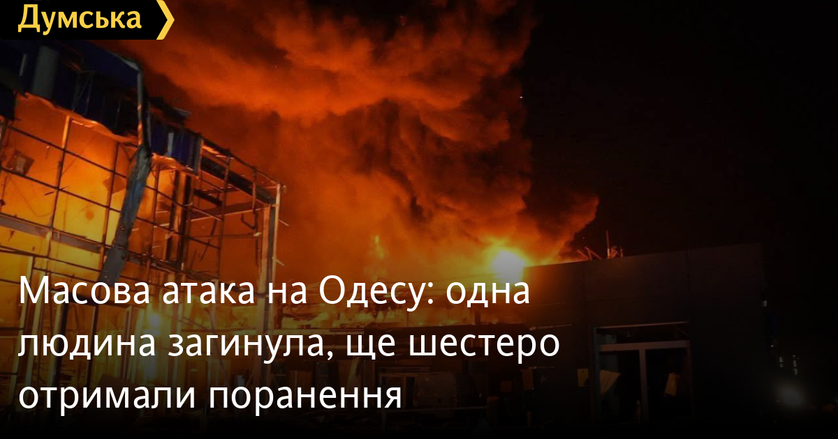 Масова атака на Одесу: одна людина загинула, ще шестеро отримали пораненняОдна людина загинула, ще шестеро отримали поранення внаслідок масованого удару по Одесі. Загиблому чоловіку було 20 років, повідомили в прокуратурі Одеської області. Постраждалих шпиталізували з травмами різної тяжкості, троє знаходяться у важкому стані — зазначили в ОВА. Ціллю ворога стали портова інфраструктура, житлові будинки, промисловість та єнергетика. В порту пошкоджено склади з добривом, вантажні вагони та автомобілі. Два шахеда влучили у квартири без подальшого загоряння. Зафіксовані падіння умамків на автосаолон та санаторій. Внаслідок влучань по місту спалахнули декілька пожеж одночасно. До ліквідації наслідків залучались понад 90 рятувальників, зазначили у ДСНС. СМЕРТЬ РОСІЙСЬКИМ ОКУПАНТАМ! Помітили помилку? Виділяйте слова з помилкою та натискайте control-enter |