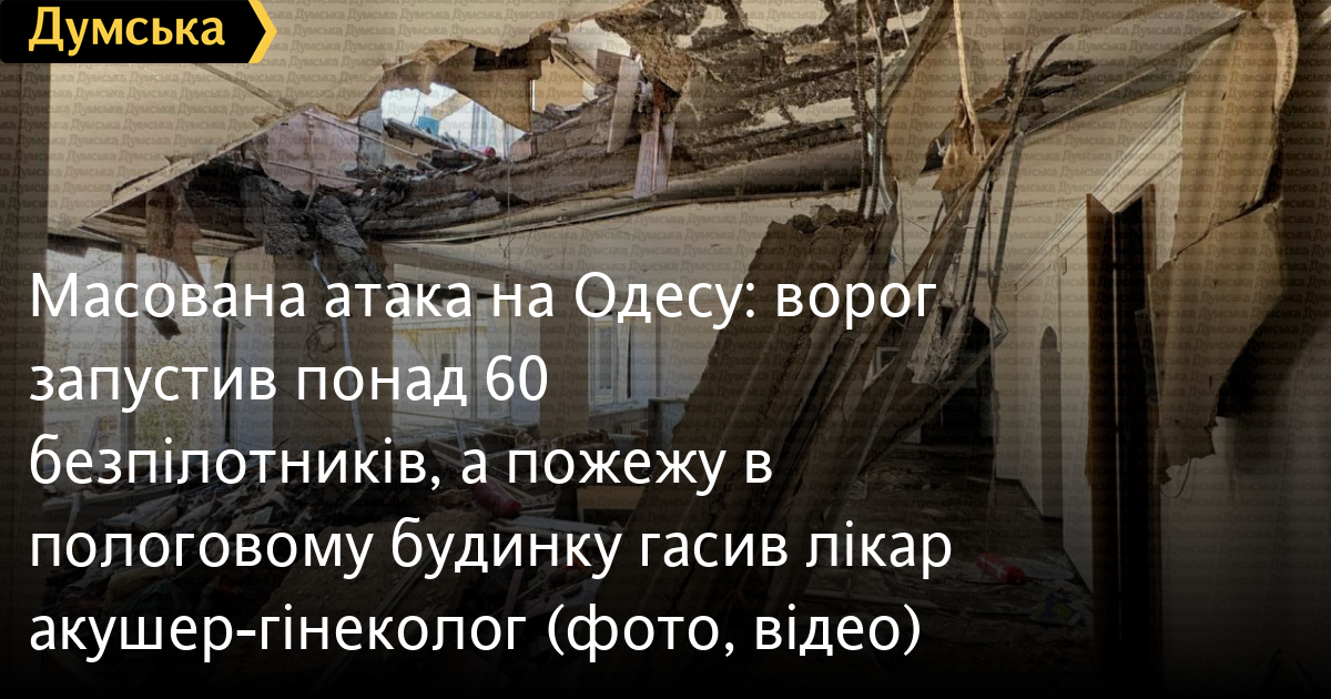 Масована атака на Одесу: ворог запустив понад 60 безпілотників, а пожежу в пологовому будинку гасив лікар акушер-гінеколог (фото, відео)Більше 60 ударних безпілотників ворог направив на Одесу. Цей удар не мав військового сенсу і став актом терору проти мирного населення, заявив президент Володимир Зеленський. «Кожен удар доводить, що росія не хоче закінчувати війну. Мої співчуття рідним і близьким», — написав він. Серйозно постраждав пологовий будинок 5. Вибухом зруйновано дах і перекриття між четвертим і третім поверхами, пошкоджено палати, де перебували породіллі. У будівлі спалахнула пожежа, яку медики загасили самостійно, повідомив директор КНП «Пологовий будинок 5» Ігор Шпак. «Наші лікарі, акушери та анестезіологи використовували пожежні рукави та вогнегасники і загасили пожежу на третьому та четвертому поверхах. Один із наших акушерів-гінекологів піднявся на дах по пожежній драбині та продовжив гасіння зверху, оскільки осередок загоряння знаходився там», — додав він. Під час атаки в пологовому будинку перебували 27 співробітників, 32 пацієнтки та 22 новонароджених. Медичні працівники встигли всіх евакуювати, зокрема винесли бокси з недоношеними малюками. «Серед новонароджених були двійнята з низькою масою тіла, які перебували на апараті штучної вентиляції легенів. Завдяки тому, що бомбосховище обладнане відділенням реанімації для новонароджених, вдалося забезпечити штучну вентиляцію легенів», — зазначив Шпак. Додамо, що цієї ночі росіяни зруйнували й інші медичні заклади, розташовані поруч із пологовим будинком. У консультативно-діагностичному центрі та його філіях — денному стаціонарі, дитячій поліклініці та сімейній амбулаторії — вибухова хвиля вибила понад 60 вікон, пошкодила внутрішні двері. СМЕРТЬ РОСІЙСЬКИМ ОКУПАНТАМ! Помітили помилку? Виділяйте слова з помилкою та натискайте control-enter |