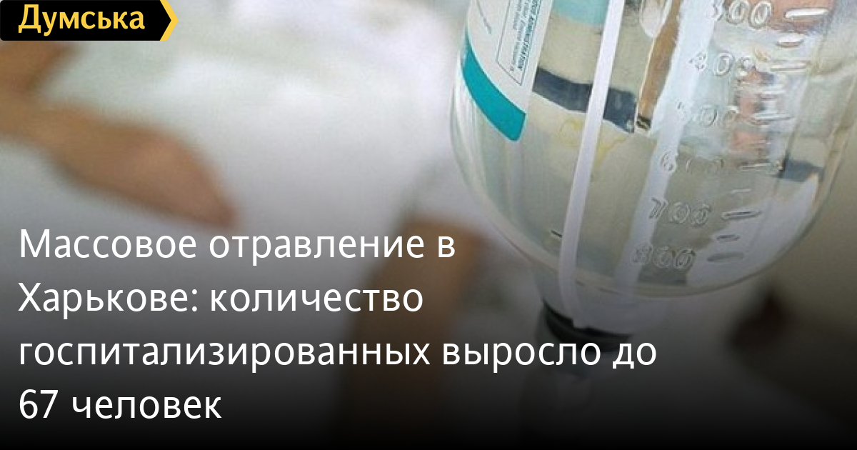 Массовое отравление в Харькове: количество госпитализированных выросло до 67 человекВ Харькове увеличилось количество госпитализированных посетителей ресторанов с симптомами отравления: по состоянию на 19 июня в больницах оказались уже 67 человек. Об этом сообщила пресс-служба ГСЧС. Из общего количества госпитализированных 14 - дети. Напомним, что еще 18 июня количество пострадавших от отравления и оказавшихся в больницах составляло 52 человека. Все они посещали два ресторана в центре города: «Якитория» и «Мафия», и по предварительной информации, отравились суши. Сейчас заведения не работают, их руководство пообещало возместить пострадавшим затраты на лечение. А полиция открыло уголовное производство по данному факту. СМЕРТЬ РОССИЙСКИМ ОККУПАНТАМ! Заметили ошибку? Выделяйте слова с ошибкой и нажимайте control-enter |