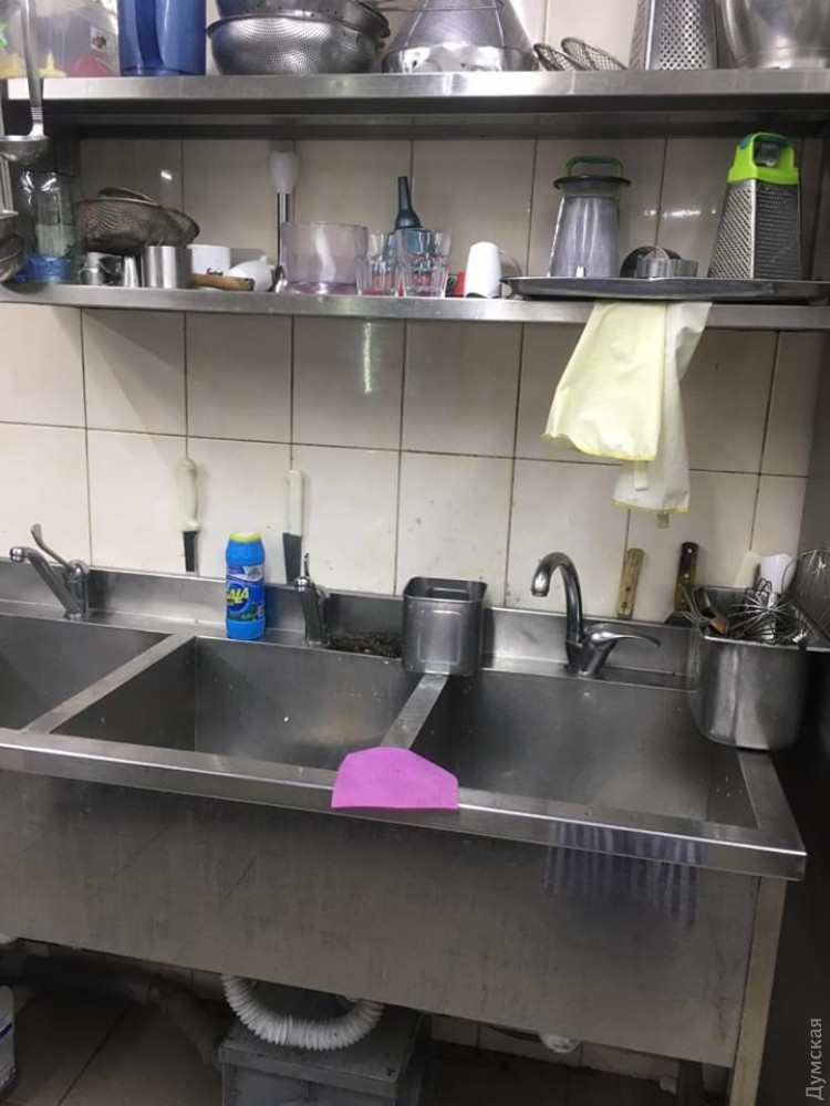 Проверка ресторана установила множество нарушений. Мясо, морепродукты и яйца хранили без надлежащей маркировки, а продукты лежали на складе без соблюдения температурного режима. Грязное оборудование и инвентарь ресторана располагался в захламленных помещениях, а посуда находилась на деревянных поверхностях, что запрещено нормами.