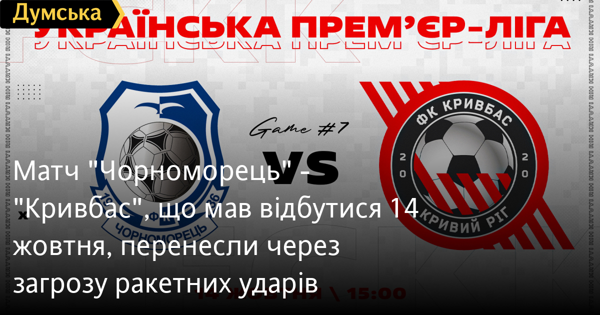 Матч 7-го туру УПЛ «Чорноморець» — «Кривбас», що мав відбутися 14 жовтня, відтермінований за взаємною згодою команд.