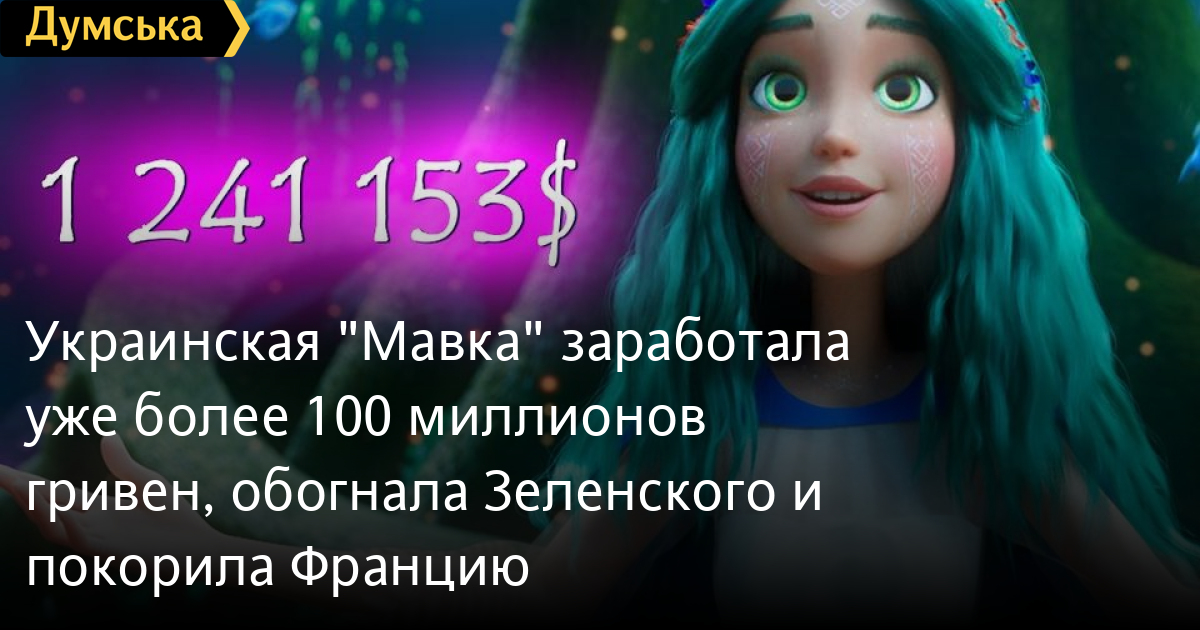 Українська «Мавка» заробила вже понад 100 мільйонів гривень, обігнала Зеленського та підкорила ФранціюПонад 100 мільйонів гривень склали касові збори найуспішнішого українського мультика «Мавка. Лісова пісня» після п'яти вікендів прокату. Всього було продано 924 881 квиток, повідомили на офіційній сторінці фільму. Крім того, українська «Мавка» опинилась у п‘ятірці найуспішніших фільмів, що зараз представлені у французькому прокаті. Зокрема, поряд із «Шазам! Лють богів» та «Джон Уік 4». Касові збори у кінці першого вікенду склали $1 241 153 (дані Box Office Mojo). «Заповнені зали, захопливі погляди, схвальні відгуки — щасливі бути разом з вами вже понад місяць. Завдяки вашій величезній підтримці, «Мавка» залишається в лідерах кінопрокату упродовж усього періоду показів», — пишуть творці стрічки. «Мавка. Лісова пісня» стала першою українською стрічкою, що набрала в національному прокаті понад 100 мільйонів гривень — і прокат триває. Це рекорд — «Мавка» обійшла навіть комедію Володимира Зеленського «Я, ти, він, вона» 2018 року. Причому досягнення зберігається, навіть якщо врахувати падіння курсу гривні. «Мавка» також стала найуспішнішою серед усіх світових анімацій в українському прокаті. Втім, тут рекорд поки що тільки в гривнях. СМЕРТЬ РОСІЙСЬКИМ ОКУПАНТАМ! Помітили помилку? Виділяйте слова з помилкою та натискайте control-enter |