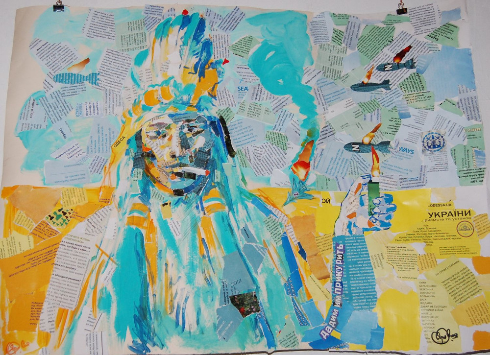 Яркую трагическую графику представил Ярослав Войцеховский, Александр Дрёмов – две картины, «Власть» и «Украина». Ольга Яровая сменила тематику – вместо красивых котиков на своих коллажах из газетных и журнальных страниц сообщает о том, чем живет в эти ужасные дни страна. Опять же коллажные антивоенные работы — их создала одна из солисток группы Fleur Ольга Пулатова. Коллажи, но уже текстильные, принадлежат авторству Сергея Кириченко. Картины с заломленными руками и кровавыми пятнами в первые дни войны написала Елена Карнатская. Произведения Игоря Гусева, Владимира Ленского, Ярослава Войцеховского, Артура Садовникова, Азизы Ибрагимовой, Елены Гореловой, Анны Сергеевой, Виктории Наумовой и других авторов представлены в новом цифровом формате NFT-токенов.
