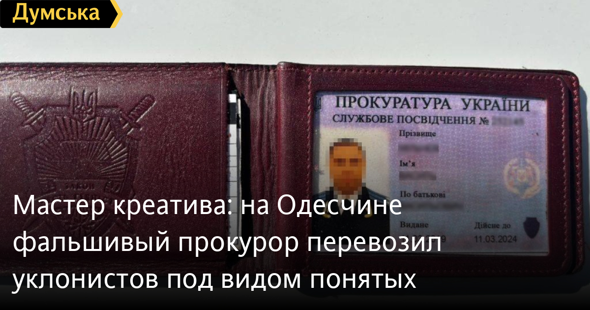 Майстер креативу: на Одещині псевдопрокурор перевозив ухилянтів під виглядом понятихЧоловіка з фальшивим посвідченням прокурора та підробленими службовими номерами затримали правоохоронці на Одещині. Як повідомили в прокуратурі регіону, він за гроші переправляв чоловіків за кордон. Щоб уникнути огляду на блокпостах і сторонніх поглядів, 41-річний безробітний мешканець Болградскього району оснастив свій автомобіль підробленими номерами, а під час зупинки показував «прокурорське» посвідчення. Пасажири грали роль «понятих» для слідчих дій. За свої послуги чоловік брав від 12 до14 тисяч доларів. Тепер йому світить підозра за організацію незаконного переправлення осіб і підробку документів. За клопотанням прокуратури фальшивий прокурор вже у СІЗО з можливістю вихода під заставу 900 тис. грн. СМЕРТЬ РОСІЙСЬКИМ ОКУПАНТАМ! Помітили помилку? Виділяйте слова з помилкою та натискайте control-enter |