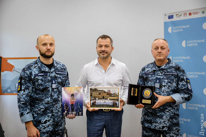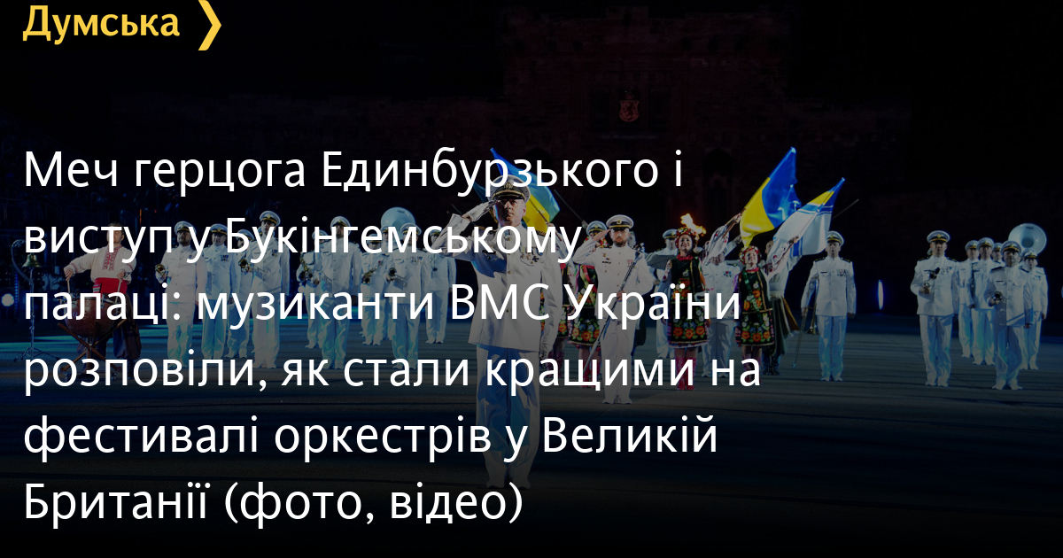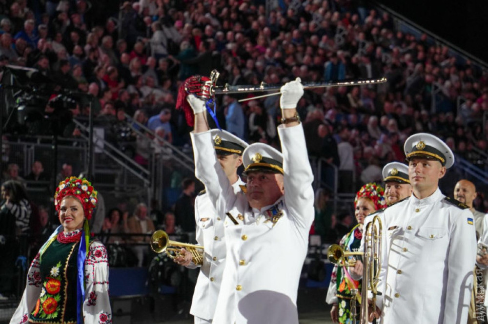 Ювілейний 75-й фестиваль військових оркестрів The Royal Edinburgh Military Tattoo відбувся в середині серпня в шотландському Единбурзі. Як писала «Думська», вперше його учасниками стали музиканти Військово-Морських Сил України. Українці не тільки зірвали овації багатотисячної аудиторії, а й стали переможцями фестивалю, а пізніше виступили перед моряками на закритій військовій базі Об'єднаного Королівства, зіграли разом з колегами зі Шотландської гвардії в Букінгемському палаці і навіть зустрілися з принцесою Анною, дочкою королеви Єлизавети II. Про підготовку до виступів, вибір репертуару та враження від фестивалю на пресконференції розповів начальник центру військово-музичного мистецтва ВМС України капітан 2 рангу Любомир Сукенник. «У грудні минулого року надійшло офіційне запрошення і почалася детальна робота: переговори з організаторами, їхні умови, наші можливості, — розповів Любомир. — Я не думаю, що існує ще один колектив, який готувався до виступу в таких умовах. У нас війна, і ми навіть не могли на 100% гарантувати свою присутність, тож організатори пішли на великий ризик, за що ми їм дуже вдячні. Міністерство оборони Британії організувало прямий рейс із Польщі. Ми відчували підтримку всього британського народу, від усіх військових, які нас зустрічали, починаючи з посадки на літак, коли нам допомагали завантажувати інструменти». The Royal Edinburgh Military Tattoo, який цього року пройшов під гаслом «Герої, які нас створили», зібрав 25 колективів з усього світу. «Це було шоу тривалістю майже цілий місяць, — розповідає Любомир. — Перший тестовий виступ був 31 липня, а основна робота почалася 1 серпня. Кожен день ми виступали перед новими глядачами, які з'їжджаються з усього світу. Заключне шоу пройшло 23 серпня. Всього у нас в Единбурзі було 26 виступів. Приблизно 250 тисяч глядачів їх подивилися». За словами офіцера, умови участі були дуже суворі: на показ усіх можливостей оркестру відводилося всього сім хвилин. «Шоу триває рівно дві години, і за цей час повинні виступити всі колективи, — згадує Любомир. — Я дуже довго намагався вмовити, щоб нам дали хоч трохи більше часу. Але організатори ні в яку. У підсумку, ми все-таки зробили по-одеськи — 7:40. Але не спеціально, доводилося робити паузи, щоб дати можливість вщухнути оплескам перед наступною мелодією». Ще однією складністю став підбір репертуару, оскільки за умовами фестивалю музика мала бути національною. «Наша творча програма була побудована так, що спочатку ми розповідали про те, як жили до війни, — пояснює балетмейстер центру Павло Івлюшкін. — Формат Tattoo передбачає, що оркестр не просто виконує музику: музиканти переміщаються по сцені, створюють фігури, задають візуальний ритм. Завдяки нашій балетній групі ми змогли показати народний танець і національну ідентичність. Військова форма — це сучасність, а національний костюм — наша історія». Першим акордом став Запорізький марш, а залишали сцену музиканти під марш ВМС України. «Фінальну частину ми довго обговорювали і багато разів міняли місцями, — додає Павло. — Ми підійшли до цього не як до концерту, а як до вистави. Почали з Запорізького маршу, потім прозвучала композиція Мирослава Скорика, відома в усьому світі, яка відразу ідентифікує Україну, потім акапельне виконання пісні Січових стрільців. Фінальна частина — опера Миколи Віталійовича Лисе