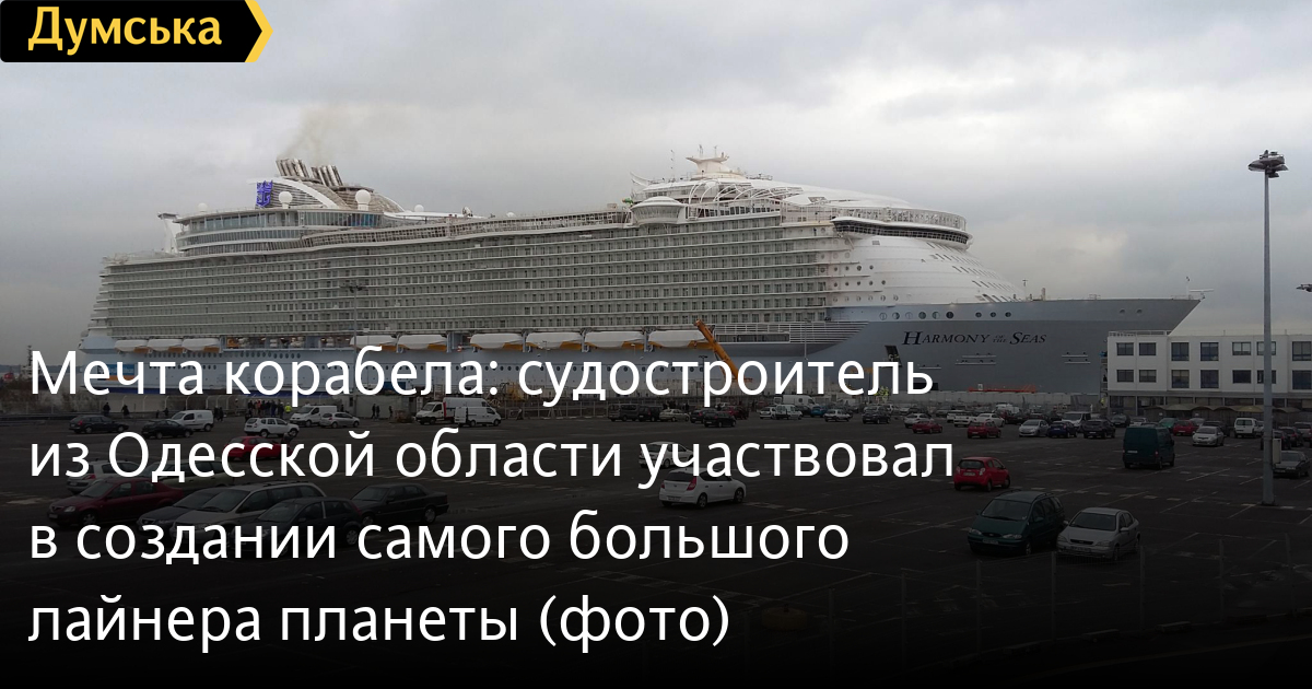 В конце мая минувшего года весь мир с замиранием смотрел, как в свой первый рейс отправился самый большой на сегодняшний день круизный лайнер «Гармония морей», принадлежащий американо-норвежской компании Royal Caribbean International (штаб-квартира ее находится в Майами). Длина судна составляет 362 метра. Этот лайнер почти на 100 метров длиннее «Титаника»! Участвовать в строительстве такого чуда – мечта каждого честолюбивого корабела. И мечта эта стала реальностью для Андрея Вербового, главного технического руководителя Килийского судостроительно-судоремонтного завода.Он поделился впечатлениями с корреспондентами «Думской».