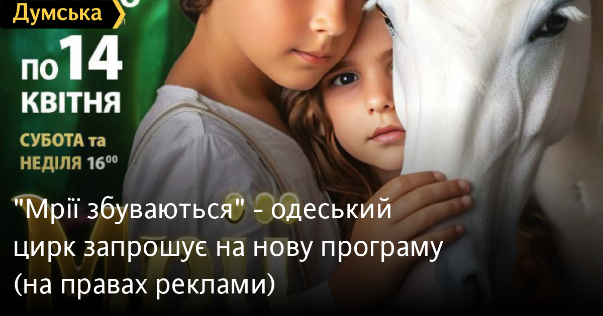 «Мрії збуваються» — одеський цирк запрошує на нову програму (на правах реклами)На нову програму «Мрії збуваються» запрошує одеський цирк з 25 лютого. Разом із головними героями глядачі потраплять у чарівний світ дитячих мрій і зможуть насолодитися справжньою майстерністю циркових номерів. Мрія кожного — побувати хоч раз у цирку. У справжньому, з великою ареною, видовищним шоу, з повітряними гімнастами, красивими й розумними тваринами, спритними жонглерами, сміливими канатохідцями, вправними еквілібристами. Усе це - в абсолютно новій програмі «Мрії збуваються». А весь вечір на манежі буде веселий клоун — душа цирку, який не залишить без посмішки жодного глядача під куполом одеського цирку. Приходьте на нову програму і ви переконаєтеся, що мрії збуваються! Дітям до 5 років, без надання окремого місця, вхід безкоштовний. СМЕРТЬ РОСІЙСЬКИМ ОКУПАНТАМ! Помітили помилку? Виділяйте слова з помилкою та натискайте control-enter |