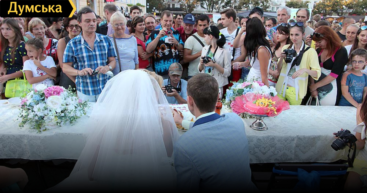 Необычную свадьбу отгуляли в субботу на Греческой площади одесситы Андрей Загорный и Елена Шмиголь. Благодаря общественной организации «Одесситы» и двенадцати одесским ресторанам, молодые смогли накрыть праздничный стол длиной 96 метров, поставив таким образом национальный рекорд.