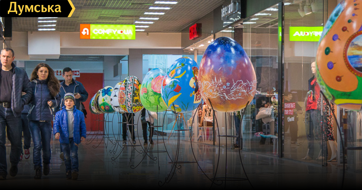 В торговом центре «Среднефонтанский» проходит арт-проект «101 художник». На всех этажах здания расставлены гигантские пасхальные яйца (90 см в высоту), которые вручную раскрасили художники со всей Украины. Таким образом лучшие творцы страны пытаются представить публике многообразие украинской культуры.
