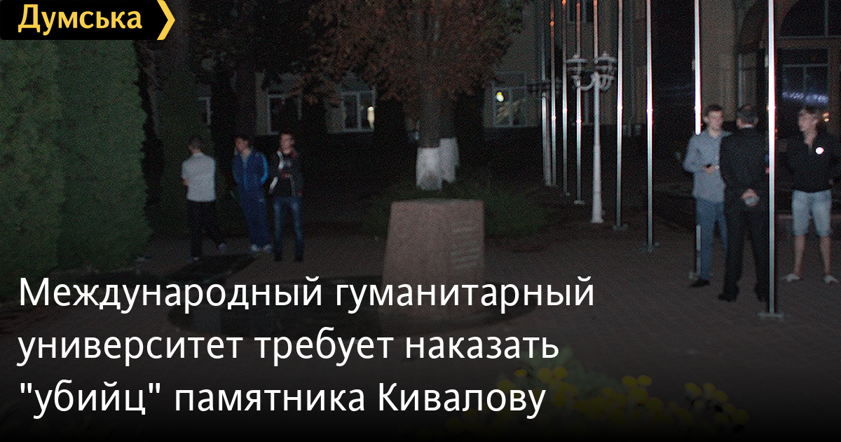 Ректор одесского Международного гуманитарного университета Анатолий Крыжановский обратился в МВД, Генеральную прокуратуру, а также к Президенту Украины Петру Порошенко с просьбой привлечь к ответственности людей, уничтоживших вечером 19 сентября памятник человеку, похожему на нардепа Сергея Кивалова, который находился на территории МГУ.