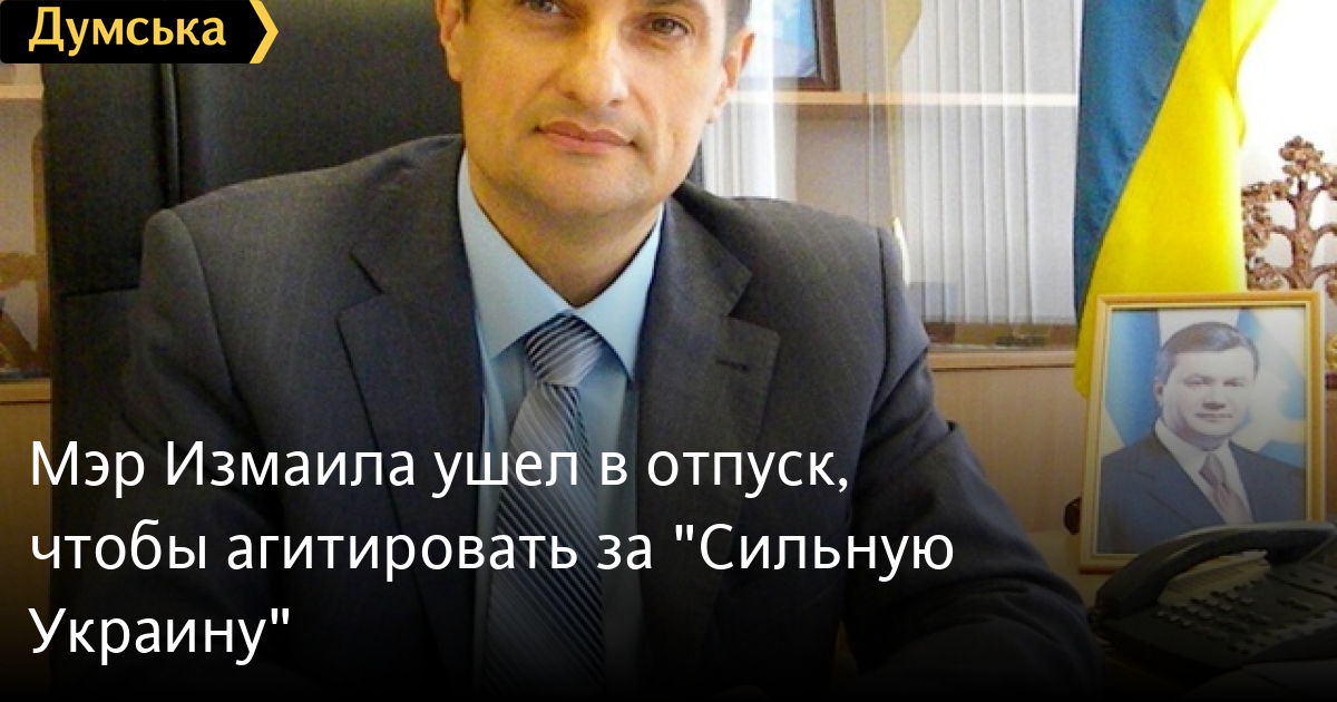 Мэр Измаила Андрей Абрамченко взял себе отпуск до 26 октября для агитации за кандидата в нардепы от «Сильной Украины» по 143-му округу — директора ООО «Судоремонтное предприятие «Дунайсудносервис» Александра Урбанского.
