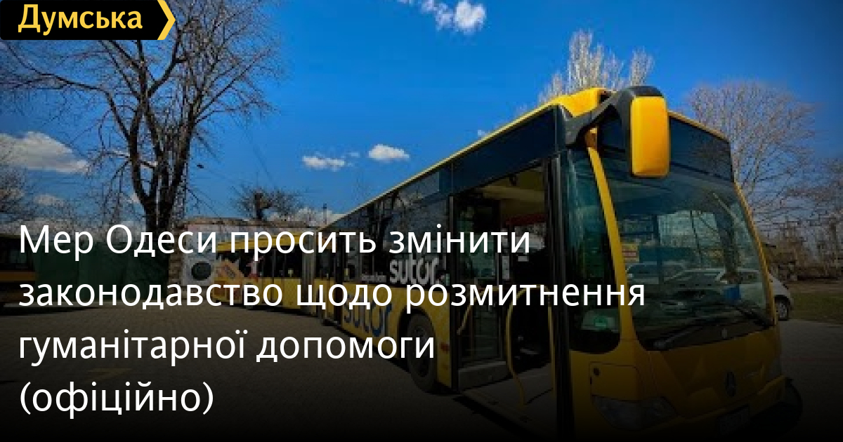 Мер Одеси просить змінити законодавство щодо розмитнення гуманітарної допомоги (офіційно)Мер Одеси Геннадій Труханов просить центральну владу внести зміни в законодавчі акти, які регулюють ввезення гуманітарної допомоги в Україну та її використання на період дії воєнного стану. Міський голова публічно звернувся до Верховної Ради України, Кабінету Міністрів, Асоціації міст України, Конгресу місцевих та регіональних влад при Президентові України. Геннадій Труханов зазначив, що українські міста з перших днів війни отримують з-за кордону гуманітарну допомогу у вигляді комфортних містких автобусів, пристосованих для перевезення маломобільних груп населення. Але через норми чинного законодавства здебільшого вони простоюють на комунальних підприємствах, адже не можуть використовуватися на міських маршрутах для перевезення людей. Іншого способу, крім як гуманітарну допомогу, розмитнення автобусів нижче за екологічний стандарт Евро-5 з 2016 року в Україні не існує. Як зазначає міський голова, ці автобуси передали міжнародні партнери для використання на маршрутах і мають працювати на людей. І особливо сьогодні, під час знеструмлення ворогом міст, коли електротранспорт не може бути виведений на маршрути. «Наразі в Одесі з 650 маршрутних автобусів лише 8 мають екологічний параметр Євро-5. Інші — це наші звичні маршрутки. Які мають стандарт Євро-3 та нижче. Адже в той самий час закон не забороняє використання цих автобусів на маршрутах!» — зауважив Геннадій Труханов. Для порівняння фахівці замірили рівень шкідливих викидів від автобуса Mercedes стандарту Евро-4, переданого Регенсбургом, та звичайної одеської маршрутки Евро-3. Очевидно, що наші «Богдани» в рази «брудніші». «Я прошу вирішити це питання якомога скоріше, аби ми могли забезпечити міста автотранспортом та якісною послугою. Наше законодавство дійсно потребує цих змін під час воєнного стану. Бо змін потребують наші люди. Сподіваюсь на те, що мене, і нас усіх, буде почуто!» — звернувся мер Одеси до народних депутатів та посадовців. СМЕРТЬ РОСІЙСЬКИМ ОКУПАНТАМ! Помітили помилку? Виділяйте слова з помилкою та натискайте control-enter