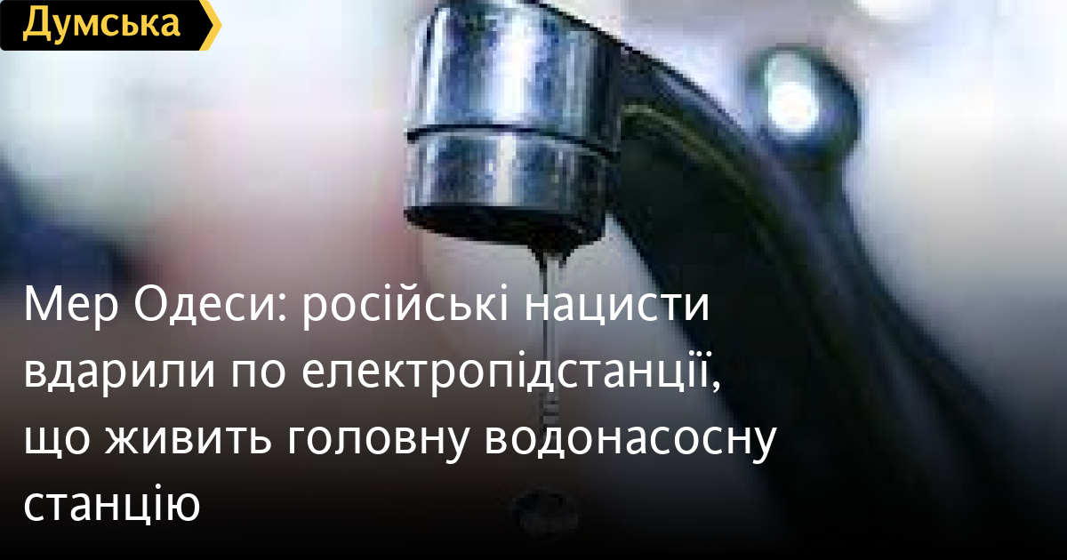 Водонасосну станцію «Головна» в Біляївці, яка постачає воду в Одесу й околиці, знеструмлено.