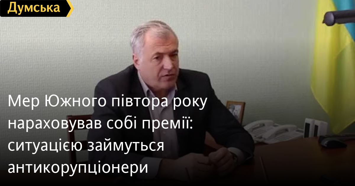 Мер Южного Володимир Новацький із січня 2022 по липень 2023 року щомісяця нараховував сам собі премії, які подекуди сягали 130% від його окладу.