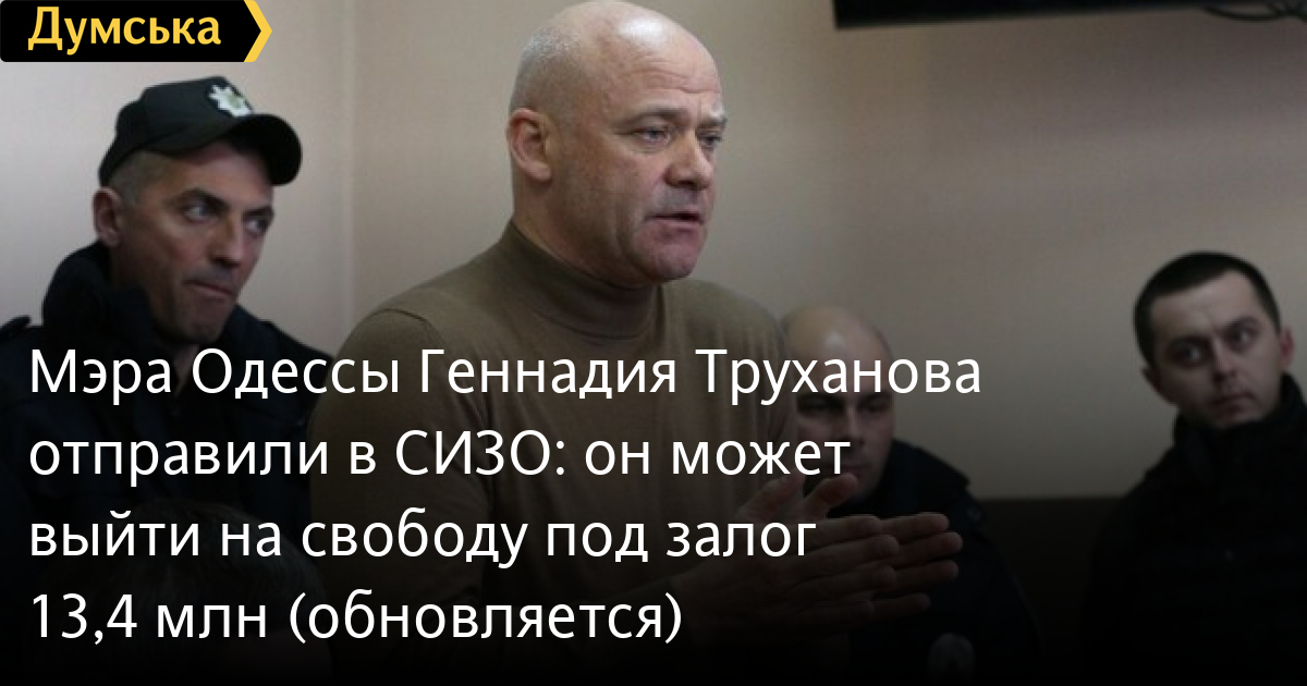 Мэра Одессы Геннадия Труханова взяли под стражу с возможностью выхода на свободу под залог 13,42 млн грн.
