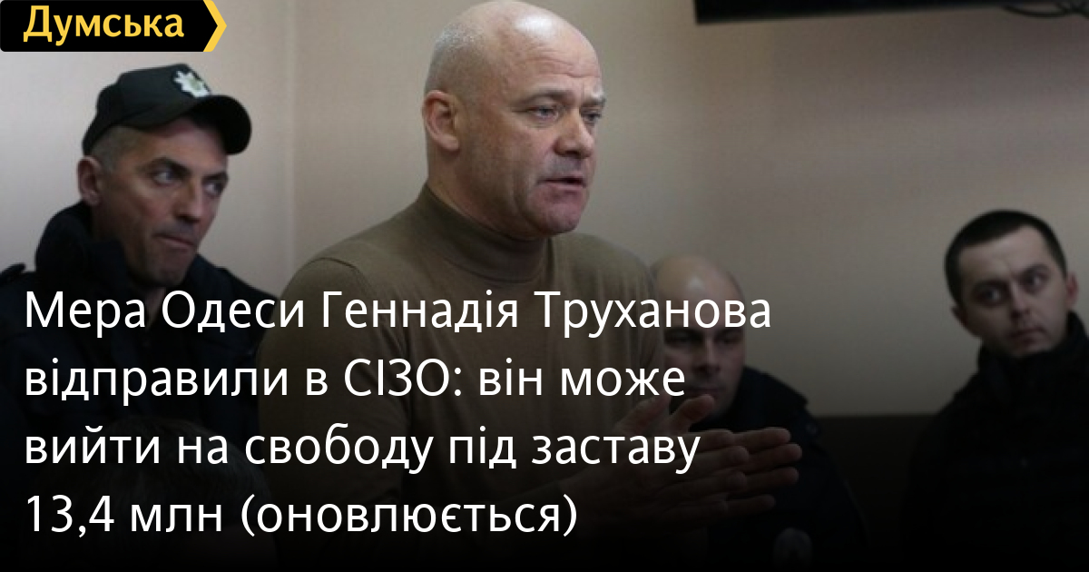 Мера Одеси Геннадія Труханова взяли під варту з можливістю виходу на свободу під заставу 13,42 млн грн.