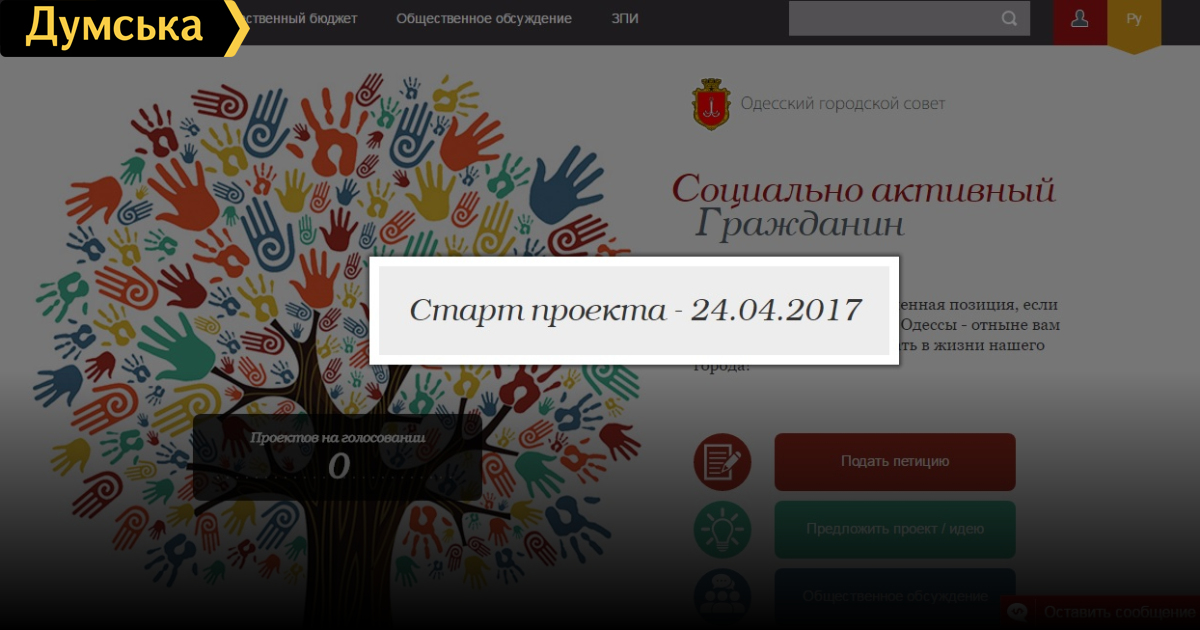 Мэрия бросает вызов социально активным одесситам: создана платформа для общественного бюджетаСегодня в Одесской мэрии состоялась презентация платформы «Социально активный гражданин». С 24 апреля на сайте citizen.odessa.ua можно будет подавать проекты по развитию города в рамках общественного бюджета. После регистрации любой одессит может предложить проект стоимостью от 200 тысяч гривен до 5 миллионов. Прием проектов будет проводится в течение 45 дней. «Есть много людей, которые разбираются сразу во всех вопросах, от высадки деревьев и реконструкции до нейрохирургии, — заявил мэр Одессы Геннадий Труханов на презентации. — Каждый имеет право на свою точку зрения, но сегодня общественный бюджет покажет, кто действительно разбирается в вопросах, а кто специалист в словопрениях… Формируя свой проект, человек получит возможность понять, как это бывает в органах местного самоуправления, когда нужно разработать проект, потом пройти экспертизу, защитить его на общественных слушаниях и так далее». Он напомнил, что Киев на свой общественный бюджет выделил 50 миллионов гривен, Львов – 20 млн, а Одесса беспрецедентные 100 миллионов: «Но это не деньги из тумбочки, которые каждый может взять, сколько хочет», — подчеркнул мэр. Директор департамента финансов Светлана Бедрега уточнила, что в зависимости от суммы проекта может понадобиться проведение тендера в системе «Прозоро»: «Нужно понимать, что общественный бюджет это составная часть бюджета Одессы, то есть все платежи будут идти через госказначейство», — пояснила она. Каждое предложение одесситов получит резолюцию гордепартамента экономического развития и профильного подразделения мэрии, что также будет отображено на сайте. После завершения срока подачи проектов их рассмотрит специальная комиссия. Через 21 день одобренные ею идеи вынесут на онлайн-голосование, по результатам которого сформируется рейтинг проектов. Победителей, чьи идеи подлежат реализации, будут выбирать с первой строчки этого списка и до тех пор, пока не наберется общая сумма в 100 млн грн. Любой желающий сможет подать два проекта в год. Один пользователь может проголосовать за пять понравившихся проектов. На сайте также есть разделы электронных петиций и общественных обсуждений. Напомним, что непосредственно реализацией проектов в рамках общественного бюджета будут заниматься исполнительные органы горсовета, авторы — только наблюдать и контролировать. СМЕРТЬ РОСІЙСЬКИМ ОКУПАНТАМ! Помітили помилку? Виділяйте слова з помилкою та натискайте control-enter