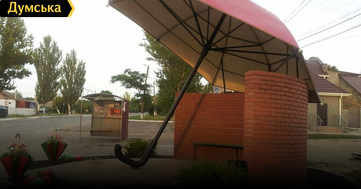 Мэрия Доброслава Одесской области продолжает ударно креативить: теперь там появилась остановка в виде гигантского зонтикаВласти поселка Доброслав Одесской области (бывшее Коминтерновское, центр Лиманского района) продолжают украшать населенный пункт необычными арт-объектами. На сей раз они взялись за автобусные остановки. Старые уродливые комплексы сносят, а вместо них ставят новые, совершенно разные. Так, одна остановка теперь представляет собой огромный зонтик, окруженный зонтиками поменьше, выполняющими роль клумб. Вторую назвали «Инь и ян« - она изображает известный символ древнекитайской философии, объединение противоположностей. Третью остановку только делают. Как рассказала «Думской» мэр Доброслава Людмила Прокопечко, она будет именоваться «Солярис». Ранее мы писали, что поссовет создал этнопарк «Лісова пісня», посвященный одноименной драме украинской поэтессы и писательницы Леси Украинки. На его территории устанавливаются различные скульптурные композиции. Кроме того, весной в Доброславе открыли памятник писанке, созданный из крепежных деталей известным скульптором Кириллом Максименко. СМЕРТЬ РОСІЙСЬКИМ ОКУПАНТАМ! Помітили помилку? Виділяйте слова з помилкою та натискайте control-enter