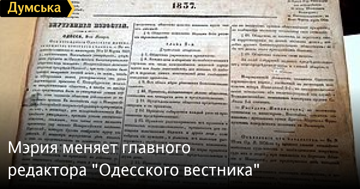 Мэрия меняет руководящий состав городского официоза «Одесский вестник». Об этом «Думской» сообщил источник в муниципалитете.