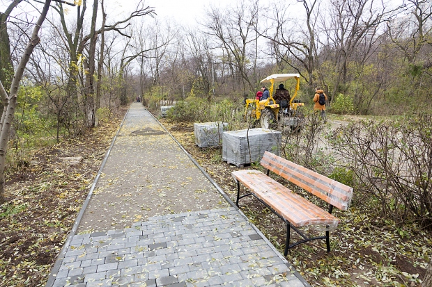 «В Одессе начались работы по восстановлению пешеходной дорожки вдоль Трассы здоровья. Время и отсутствие должного ухода привели ее в неприглядный вид. Покрытие здесь не меняли еще с 60-х годов — во многих местах оно просело, кое-где и вовсе разрушилось, — объяснили в пресс-службе. — Сейчас пешеходную дорожку вдоль Трассы здоровья стали обновлять. На расчищенных от дикой поросли участках начались работы по укладке тротуарной плитки. Уже оборудовано около 100 метров покрытия. Возле восстановленного участка пешеходной дорожки появились первые садовые скамейки. Такие же скамейки будут установлены вдоль всей дорожки».