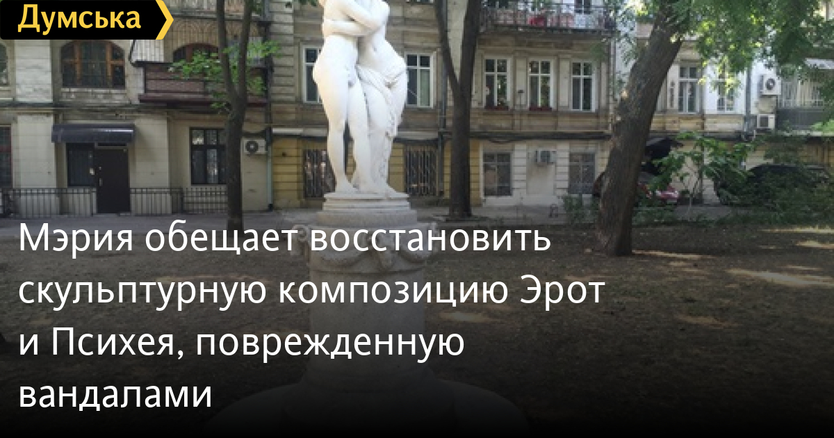 В одесском муниципалитете обещают восстановить скульптурную композицию «Эрот и Психея» в Пале-Рояле, пострадавшую от рук вандалов.