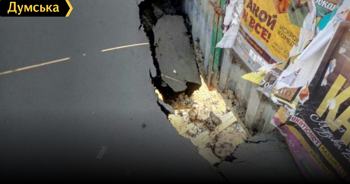 асфальт, не имеющий дна, упирается во временное ограждение из жести, но самая большая загадка — каким образом ему повредило преждевременное открытие движения автомобилей. Ведь провал — на пешеходной части, в противоположном конце от проезжей части. Этот висящий асфальт должен быть набрать со временем крепость графена?