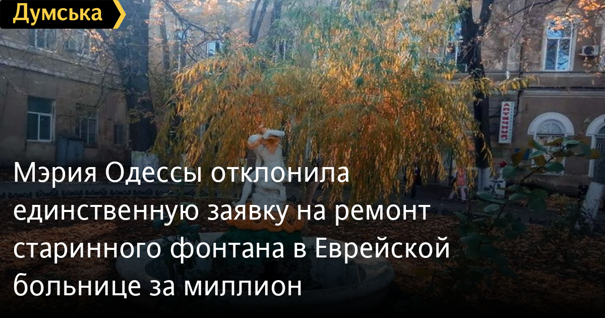 Мэрия Одессы отклонила единственную заявку на ремонт старинного фонтана в Еврейской больнице за миллионТендер по выбору подрядчика реставрации фонтана «Мальчик на черепашке» во дворе Еврейской больницы Одессы (ГКБ №1) не состоялся из-за отсутствия предложений. Единственную заявку от фирмы «Экстерьер-дизайн» отклонили — компания забыла добавить в пакет документов копию паспорта уполномоченного лица. Заказчик работ — муниципальное управление капстроительства — собирается потратить на ремонт скульптурной композиции 1 млн 135 тысяч грн. «Экстерьер» готов был сделать все за 918,8 тыс. грн. Согласно техзаданию, победитель тендера должен был привести в порядок чашу бассейна, каменный постамент и саму металлическую скульптуру, заменить коммуникации и провести озеленение прилегающей территории, высадив 126,6 кв. м газона и 1600 цветов и 188 деревьев и кустов. СМЕРТЬ РОСІЙСЬКИМ ОКУПАНТАМ! Помітили помилку? Виділяйте слова з помилкою та натискайте control-enter Новини по цій темі: 26 червня 2025: Сумнівний подарунок: пам'ятку архітектури на Приморському бульварі намагаються повернути одеській громаді 17 серпня 2025: Продають мерч у залі Костанді, ховають Стародавній Єгипет у підвалах і виставляються в Німеччині: як виживають одеські музеї (частина перша) 27 лютого 2025: Компанія з групи Коломойського готується до будівництва торгового центру біля Дерибасівської 28 листопада 2024: Будинок із «милицями»: на пам`ятку архітектури в одеському провулку Ройтбурда чекають протиаварійні роботи за 20 млн грн (фото) |