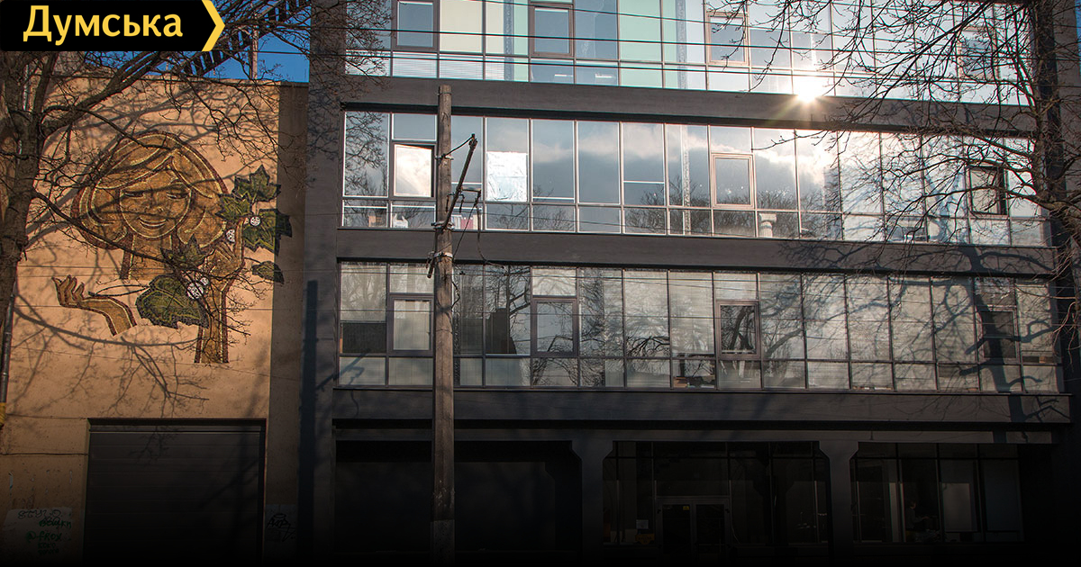 Здание на Канатной было построено в позднесоветское время для ателье по пошиву одежды. Одесситы знают его по мозаике, изображающей девушку с листьями платана.