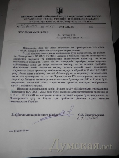 «Думская» уже писала о конфликте, разгоревшемся между жильцами дома номер 14 по улице Гоголя и ночным клубом «Министериум», расположенным по тому же адресу. Одесситы, отчаявшись в попытках отстоять свое право на спокойный ночной сон, заручились поддержкой мэрии. Но, как оказалось, тщетно.