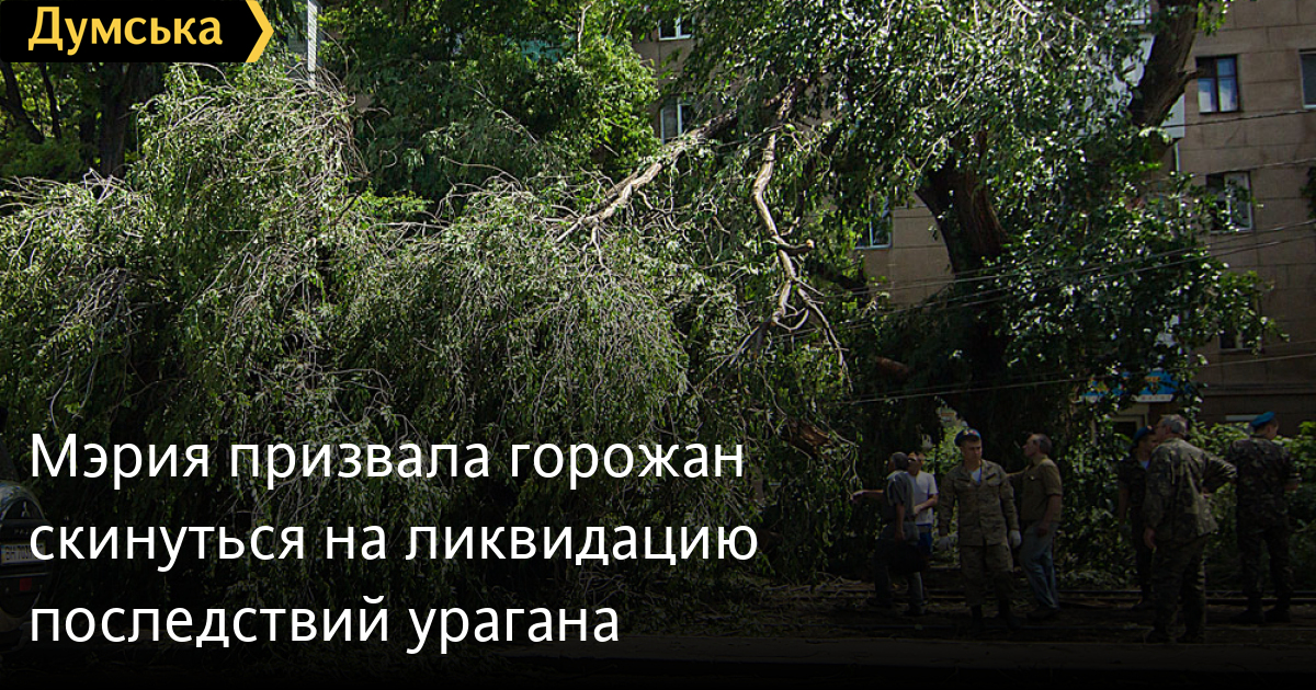 Мэрия Одессы призвала горожан жертвовать денежные средства на ликвидацию последствий вчерашнего урагана. В Главном управлении Государственной казначейской службы Украины открыт специальный счет, куда можно перечислять деньги.