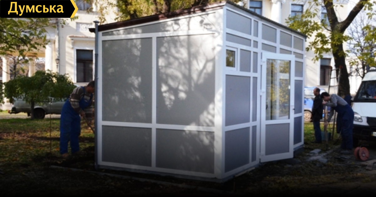 якщо проблему вирішувати монтажем туалетів на самих видних місцях, то незабаром побачимо сортир біля Дюка, Хвойди №2, Пушкіна і т.д. Для цього є інші засоби. Якщо ж дуже треба ставити туалет біля історичної будови, то його вигляд повинен гармонізований з нею. Приклад-туалет біля Оперного