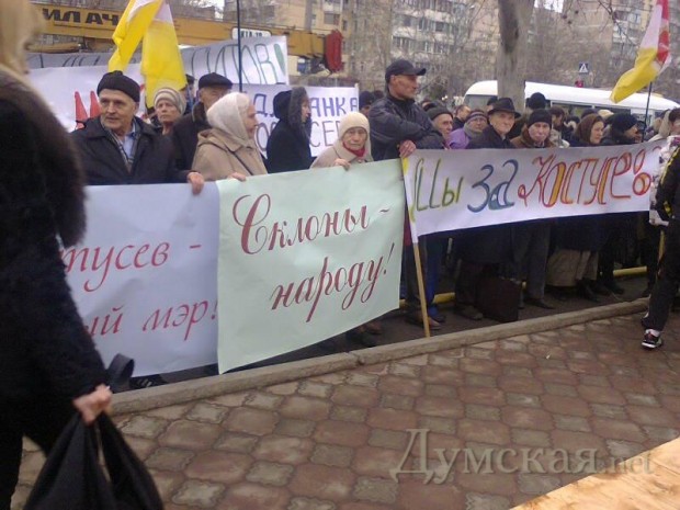 Как передает корреспондент «Думской», перед началом заседания возле здания суда собрались несколько сотен человек с флагами города и лозунгами «Склоны – народу!», «Мы за Костусева». На митинг в поддержку мэра пришли в основном сотрудники ЖКСов, члены комитетов самоорганизации населения (СОН) и представители общественных организаций, входящих в координационный совет при городском голове. К примеру, СОН «Юго-Западный массив» сумел собрать 200 человек.
