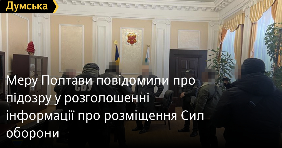 Меру Полтави Олександру Мамаю повідомили про підозру у несанкціонованому поширенні інформації про розміщення підрозділів Збройних сил України.