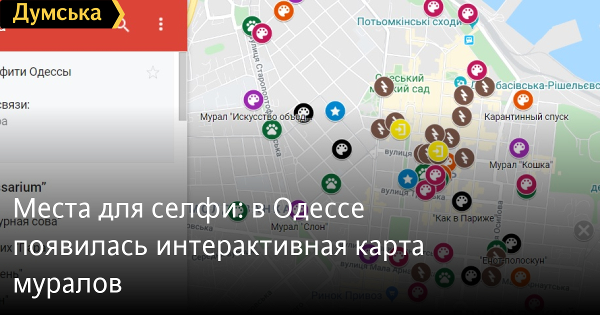 Поклонникам стрит-арта теперь не придется тратить время на поиски городских муралов в Одессе. Эту миссию возьмет на себя специальная интерактивная карта на сервисе Google Maps. Такой мобильный гид поможет найти в городе настенные арт-объекты, узнать их историю и авторство.