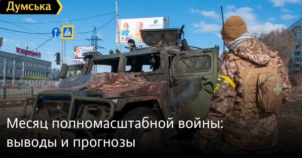 Месяц войны. С копейками, но не суть. Все обзоры к датам обычно создаются натужно и искусственно. Потому что события на фронте никогда не привязаны к календарю, а только к логистике, скорости мобилизации, текущим операциям. Может так выйти, что число настало, а писать-то и нечего.