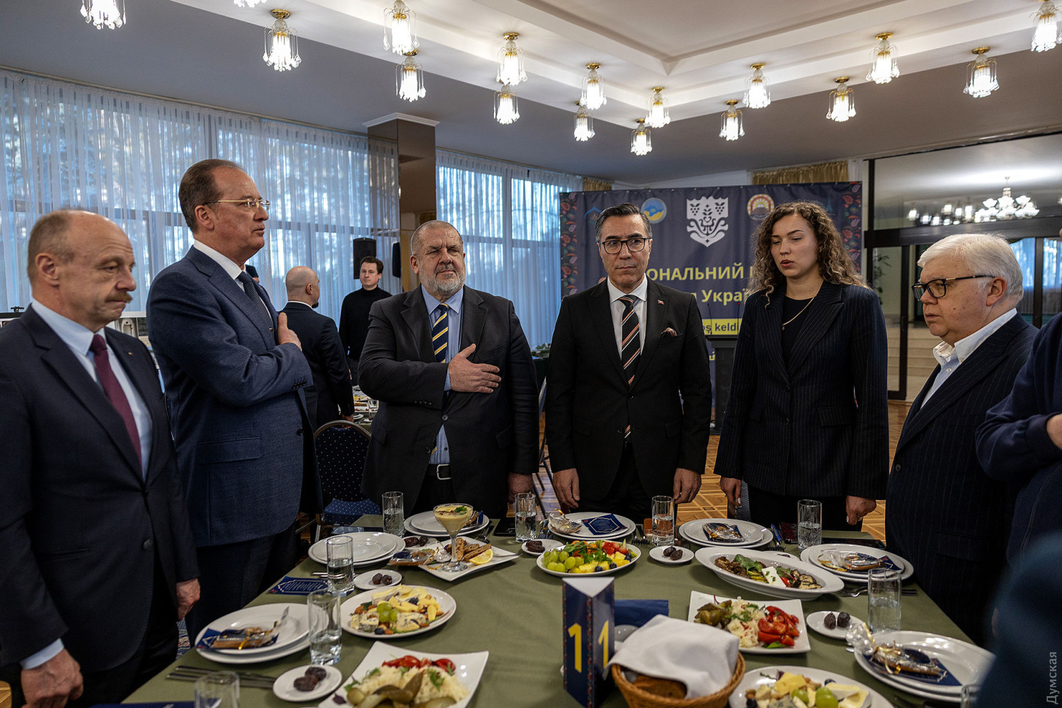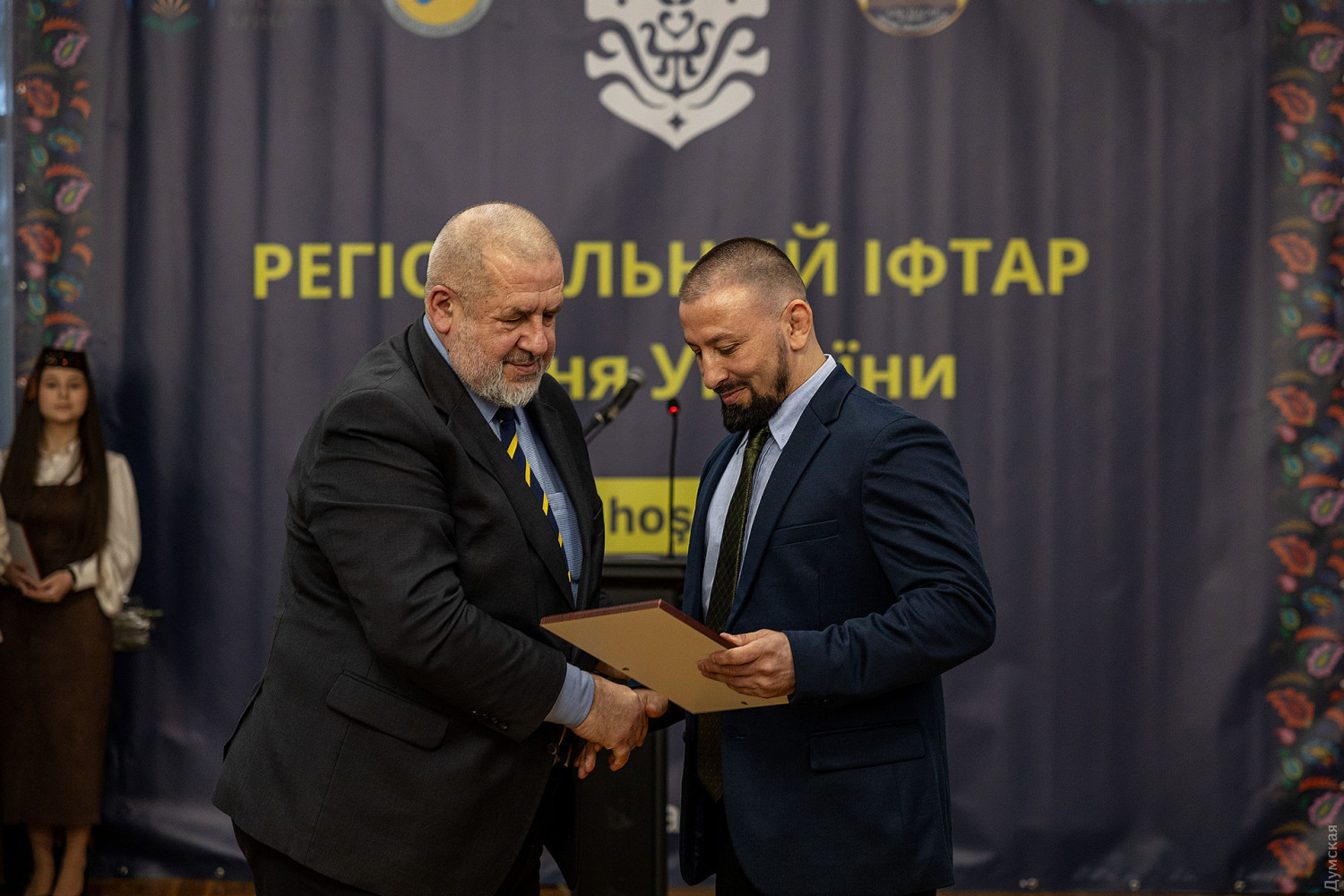 Третий региональный ифтар — вечерняя трапеза в священный для мусульман месяц Рамадан — прошел вчера вечером в Доме приемов Одесского областного совета. Как передает корреспондент «Думской», вечер начался с минуты молчания в память о погибших защитниках и исполнения гимнов Украины и крымскотатарского народа. Здесь собрались военные, волонтеры, активисты, представители разных общин, церквей, мечетей и власти. Муфтий Духовного управления мусульман Украины «Умма» Мурат Сулейманов отметил, что сила украинского общества заключается в его многообразии и способности к диалогу. «Ифтар – это не просто вечерняя трапеза, а символ единства, взаимного уважения и поддержки, особенно во время войны, — рассказал муфтий. — Украина объединяет представителей разных этносов и конфессий, и именно в этом наша сила. Если мы уважаем друг друга и поддерживаем, ни один враг не сможет нас преодолеть». Глава Меджлиса крымскотатарского народа Рефат Чубаров уверен, что проведение ифтара в Одессе уже стало важной традицией и символом единства разных общин. «Сегодня крымскотатарский народ и сотни тысяч людей других национальностей, живущих в оккупированном Крыму, ждут освобождения. Мы все едины в защите своего государства и являемся единственной украинской политической нацией», — сказал он. По словам депутата Одесского областного совета, главы общественной организации «Крымские татары Одесчины» Февзи Мамутова, третье проведение ифтара свидетельствует о том, что мероприятие стало устойчивой традицией. «Первый ифтар был случайностью, второй закономерностью, а третий уже можно назвать традицией, — отметил Февзи Мамутов. — На этом мероприятии собрались представители разных конфессий и национальностей, военные, общественные деятели и власть. Именно такие события помогают консолидировать общество и делают нас более сильной украинской политической нацией». Генеральный консул Турции в Одессе Мухиттин Челик подчеркнул, что Рамадан является временем духовного очищения, милосердия и братства, а ифтар символизирует объединение людей разных культур и религий. «Ифтар объединяет людей разных вероисповеданий и культур за одним столом и символизирует толерантность и взаимное уважение», — отметил дипломат, добавив, что крымские татары играют важную роль как мост между Украиной и Турцией. Во время мероприятия представители военных администраций и городского совета вместе с духовенством вручили награды военным, общественным деятелям и активистам. Также были вручены религиозные награды и благодарности за вклад в развитие мусульманской общины Украины и поддержку межконфессионального диалога. Гости мероприятия также могли ознакомиться с выставкой фотографий одесских мечетей, подготовленной специально к ифтару. Организаторы надеются, что проведение региональных ифтаров в Одессе станет постоянной традицией и будет способствовать укреплению диалога между общинами и поддержке украинского общества во время войны. СМЕРТЬ РОССИЙСКИМ ОККУПАНТАМ! Заметили ошибку? Выделяйте слова с ошибкой и нажимайте control-enter |